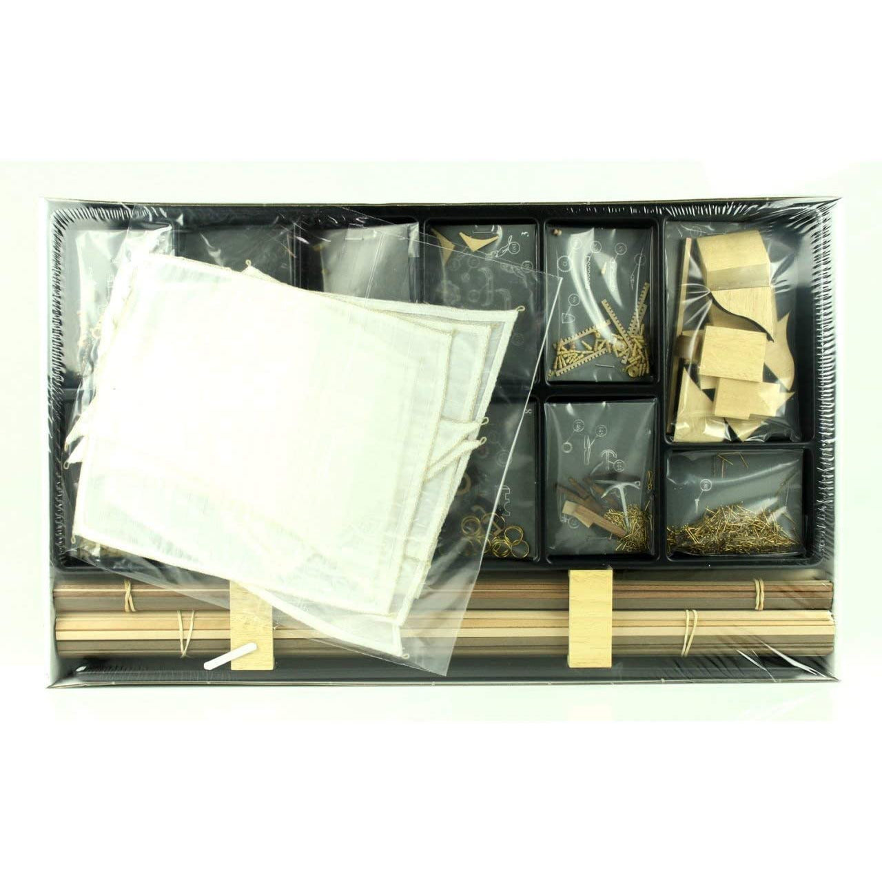 This model Halifax from the Atlantis Series has a wood planked hull to build. This model comes with fittings, sails and tools necessary for its implementation. The Halifax was bought by the English Government in 1768. She is a schooner and was very active during the troop transports which docked at Boston in 1775. She rose to fame with the fire at Falmouth, New Portland, Maine in 1776, the year of the American Revolution. Following this action commanded by Henry Mowatt, the entire East Coast of the United States rose against the British. Length : 74 cm. Height : 59 cm. Beam : 26 cm.