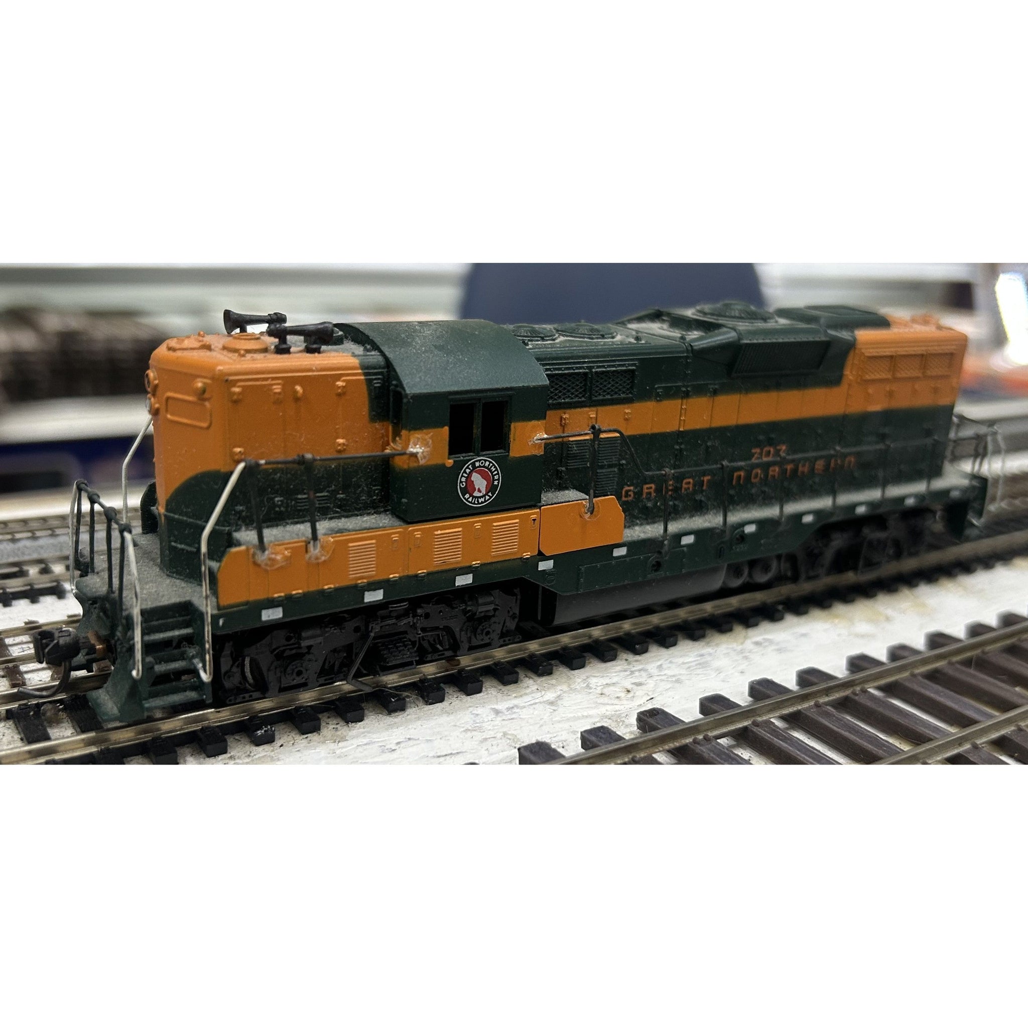 HO Scale Athearn Great Northern GP-9 Blue Box. Runs good. No rear coupler.