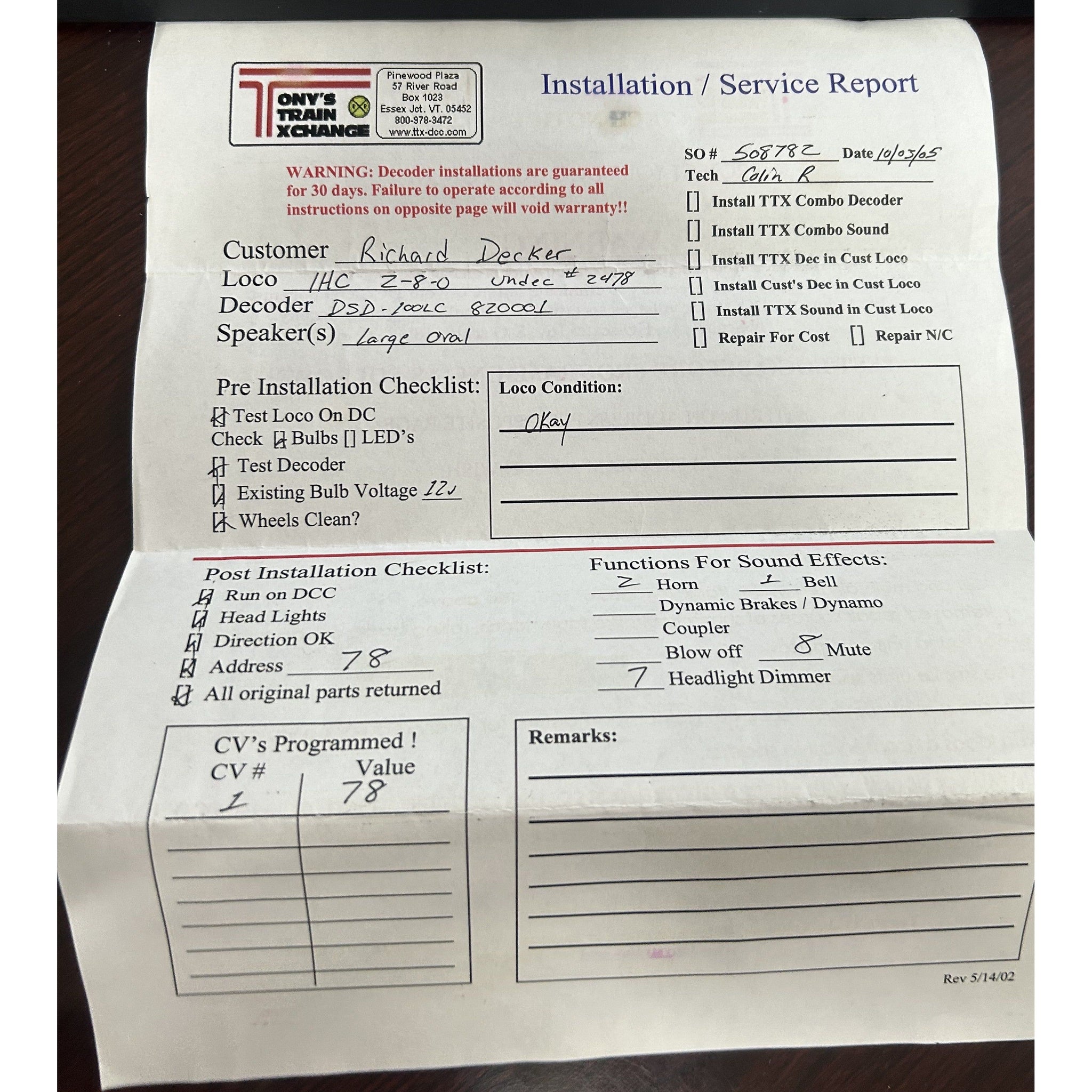 HO Scale IHC 2-8-0 #2478 Undecorated Steam Locomotive DDC w/sound. Used.