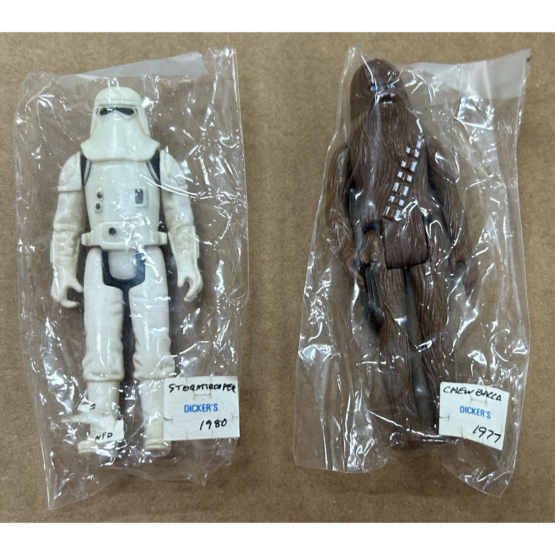 4.25" Original Star Wars Figures Chew Bacca (1977) and a Stormtrooper (1980). Brand new.