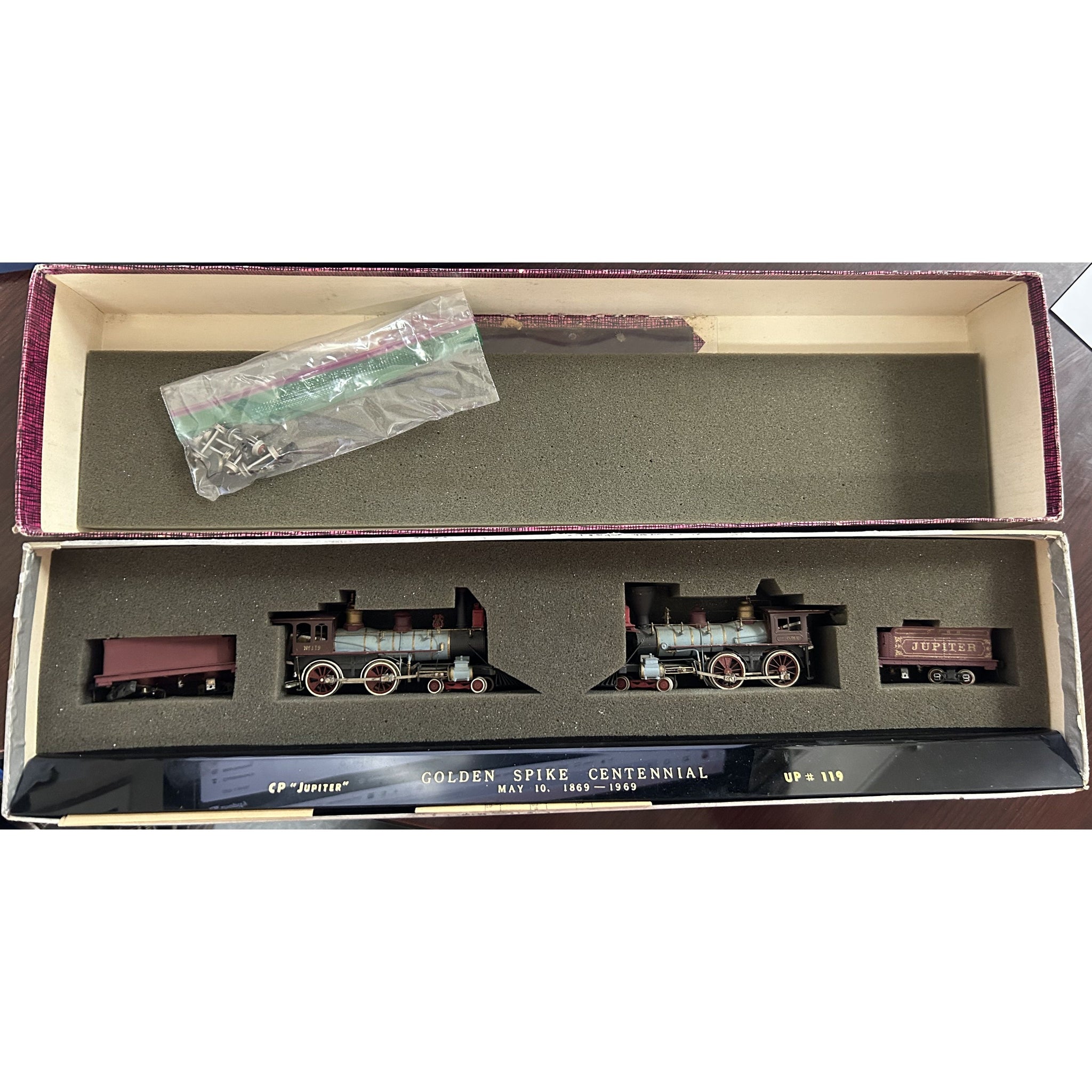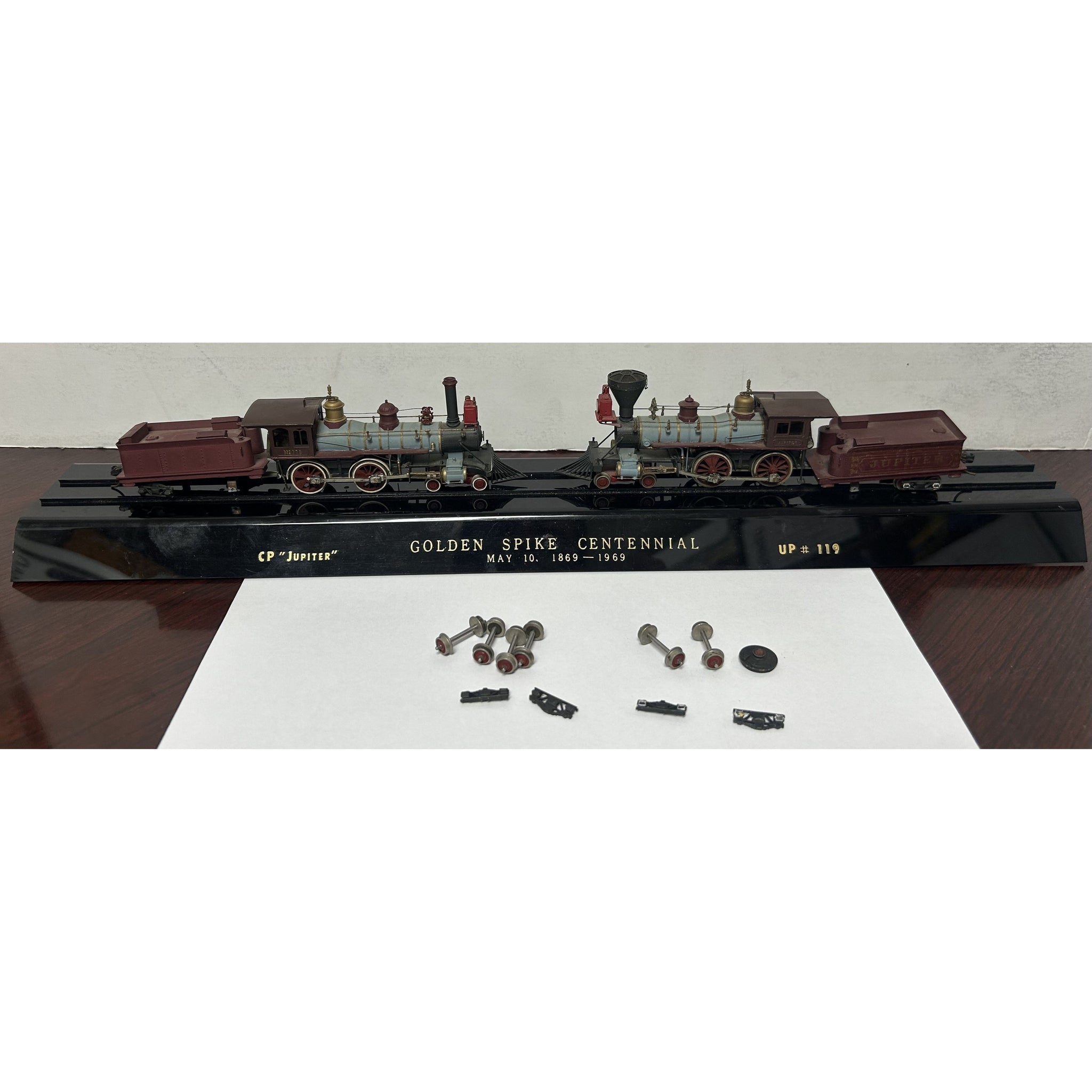 HO Scale United Models Golden Spike Centennial CP UP Set. Nicely painted. Need cleaning and servicing to run. Tender trucks need repair. Everything is included. No parts are missing. I don't have to repair everything.