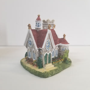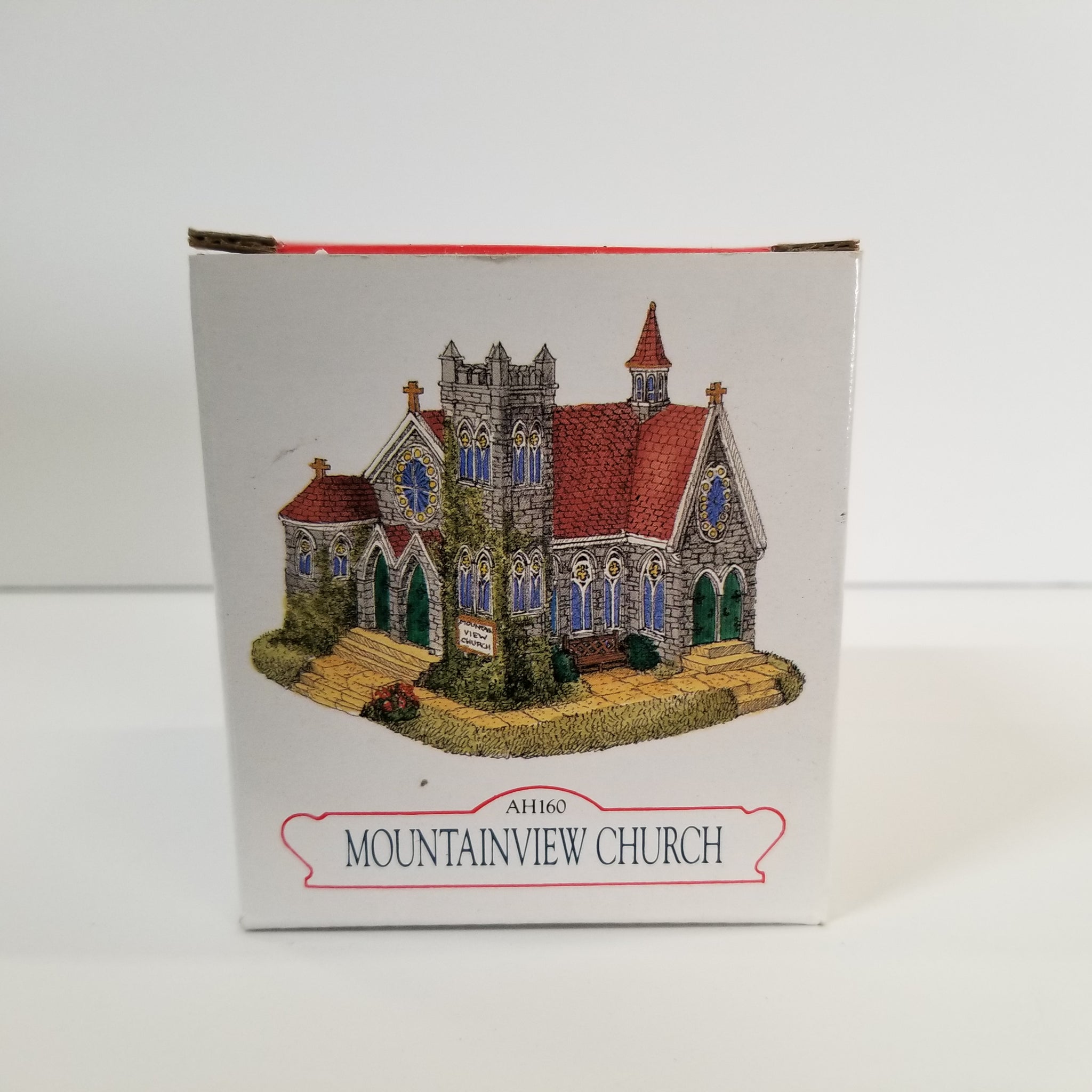 Liberty Falls Collection no.AH160, Mountainview Church. The Americana Collection depicting the old western community of Liberty Falls is sculpted and mastercrafted of the finest materials, then individually hand painted. This painstaking creative process highlights all the architectural details and heartwarming, homey touches that make Liberty Falls everyone's favorite frontier town. Cast in a secret formula sculptural material, chosen for its ability to capture minute detail. Original box.