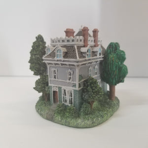 Liberty Falls Collection no.AF227, Haunted House. The Americana Collection depicting the old western community of Liberty Falls is sculpted and mastercrafted of the finest materials, then individually hand painted. This painstaking creative process highlights all the architectural details and heartwarming, homey touches that make Liberty Falls everyone's favorite frontier town. Cast in a secret formula sculptural material, chosen for its ability to capture minute detail. Original box.